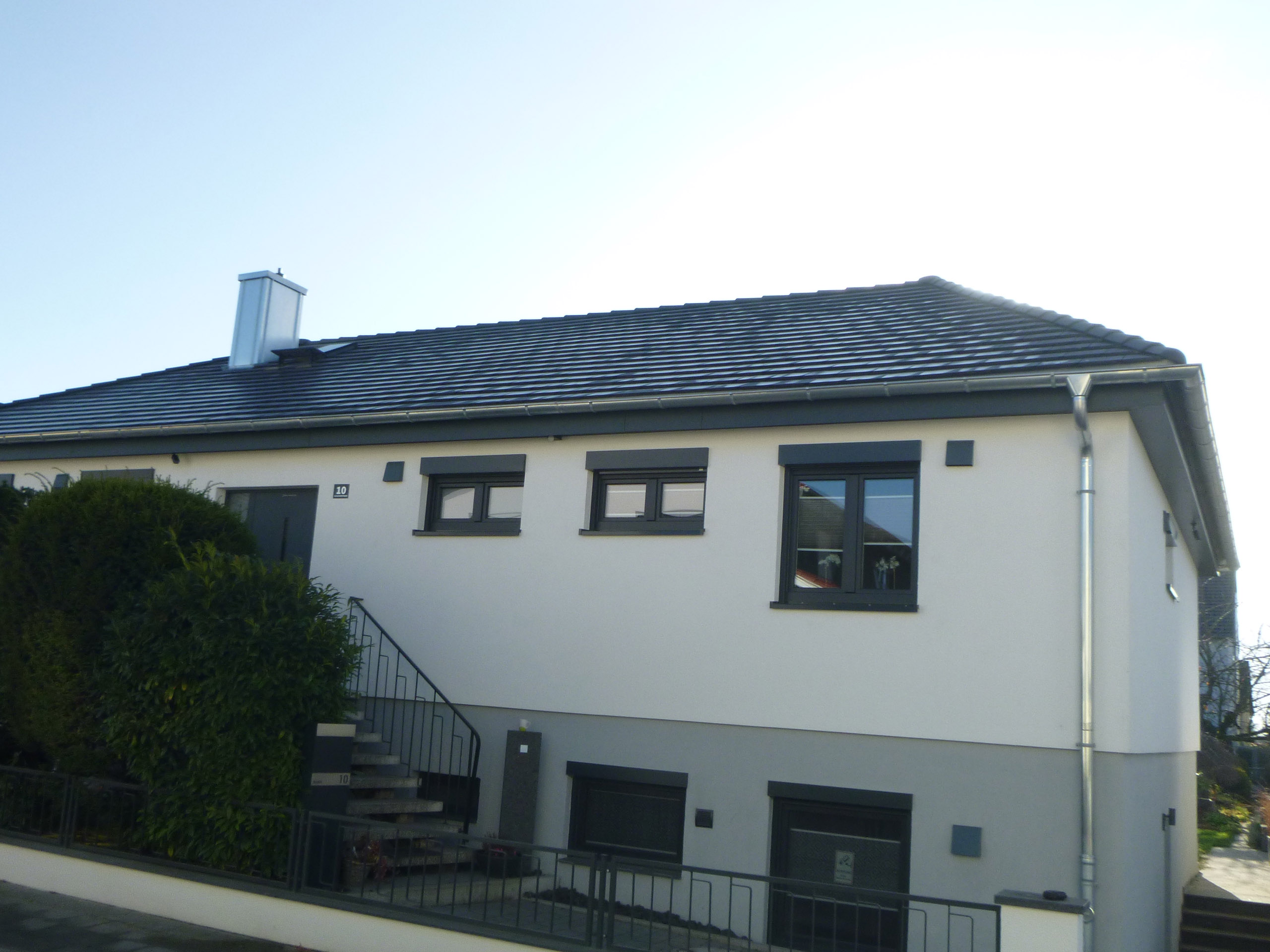 Bei diesem Projekt wurde die Fassade energetisch saniert mit neuen Kunststofffenstern, elektrischen Rollläden und Raffstoren mit integriertem Insektenschutz sowie einer dezentralen Lüftung ausgestattet. Das Dach wurde als modernes Energiedach mit integrierter PV‑Anlage und neuer Dachentwässerung.